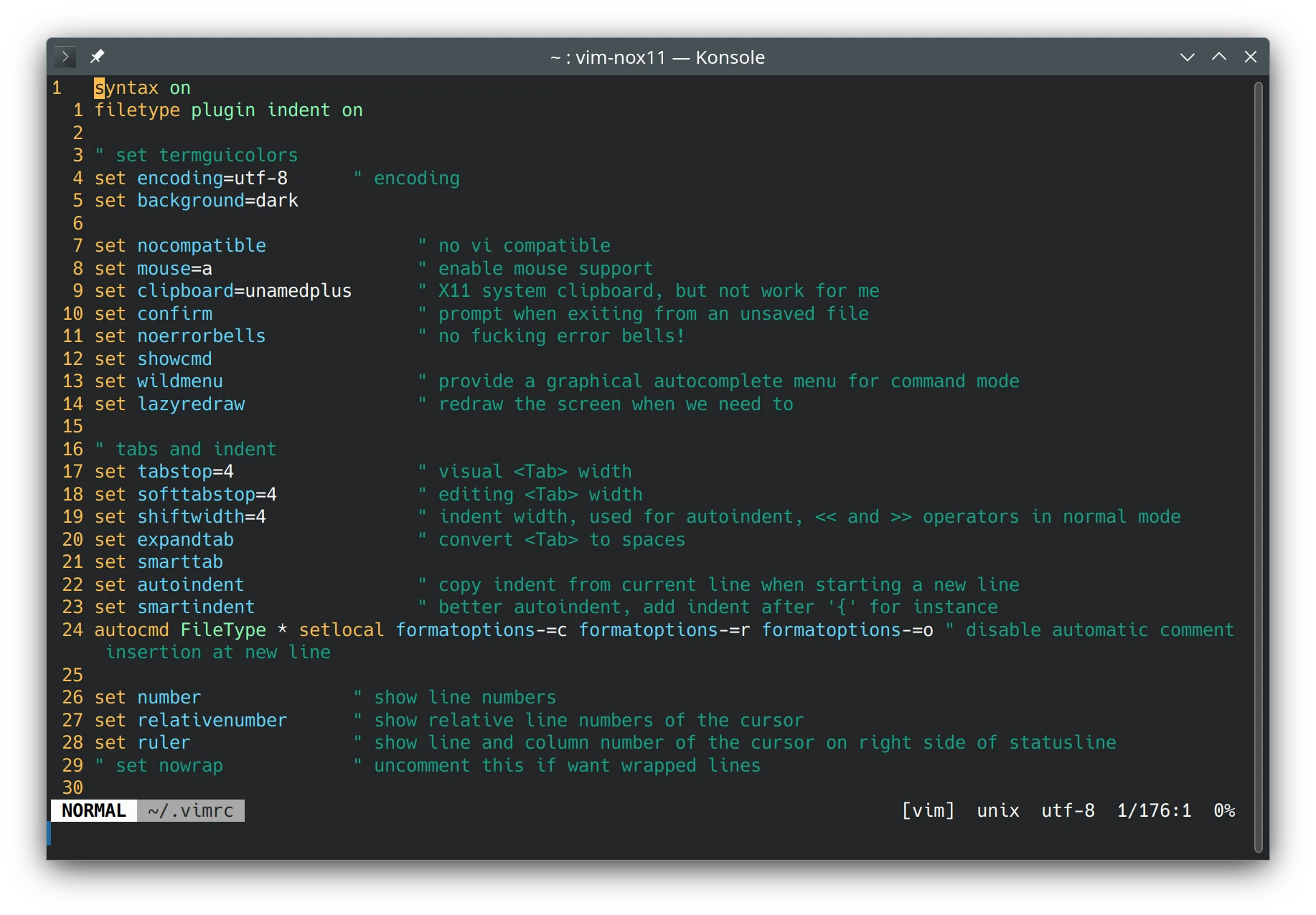My .vimrc is aimed at building a minimal, basic and pratical vim, it works for my everyday needs.
