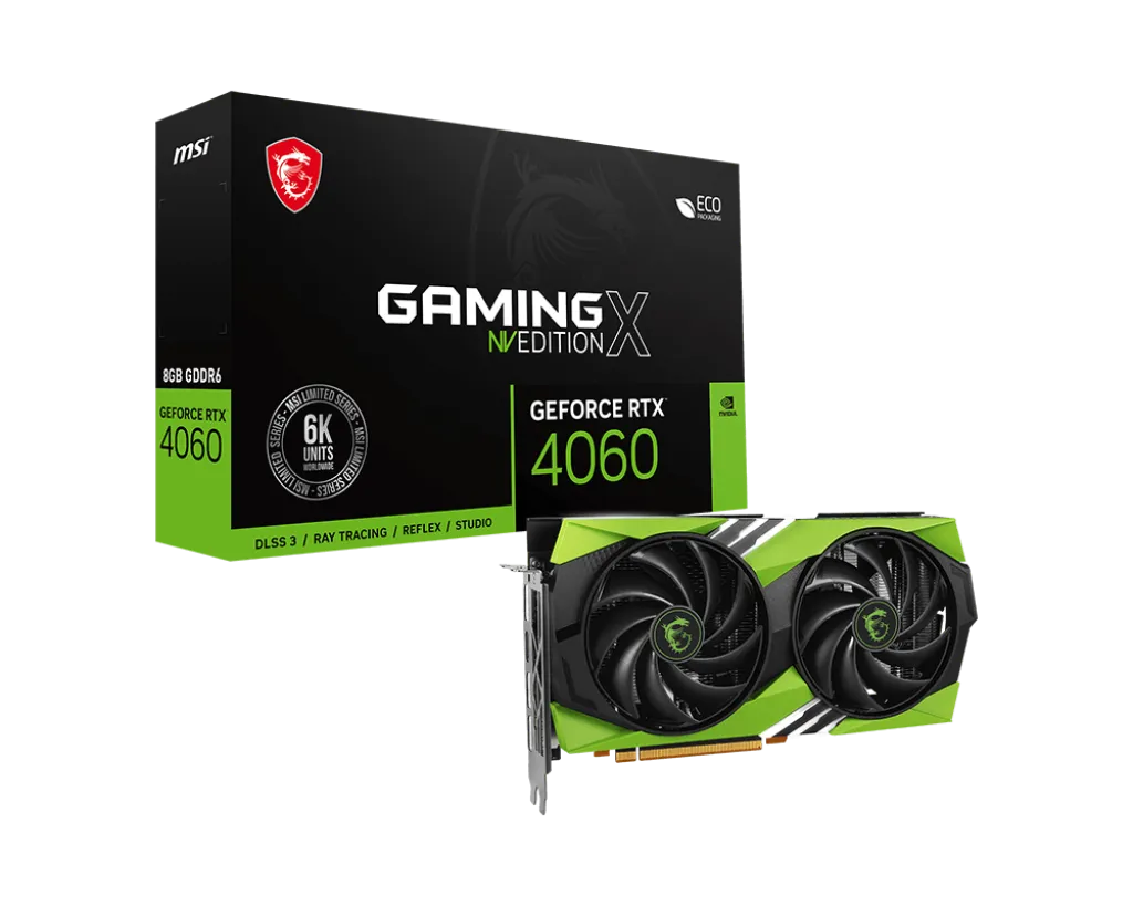 我购买的显卡是 微星 RTX 4060 NV Edition 8G,这款限量版显卡外壳装饰有核弹厂绿色,个人觉得很好看,但是价格要比普通版贵 100。